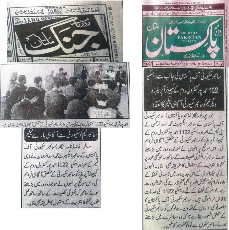 These views were expressed by Cyber Security of Pakistan’s Cyber Expert Muhammad Asad Ul Rehman while giving a lecture on cybersecurity to computer operators at Rescue 1122 Ahmedpur East Control Room. On this occasion, he explained the details of the increasing cybercrimes in the present era as well as the practical way of using the internet safely.