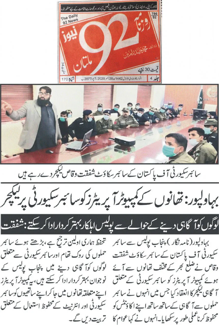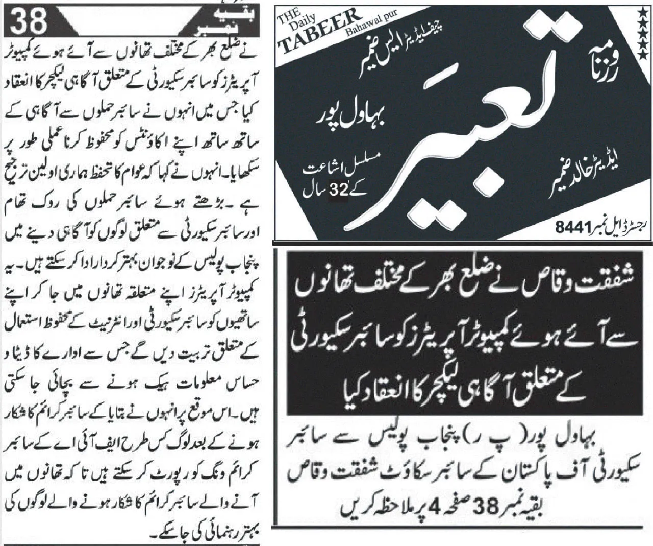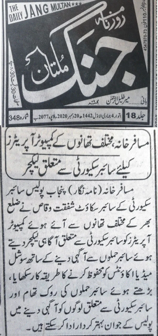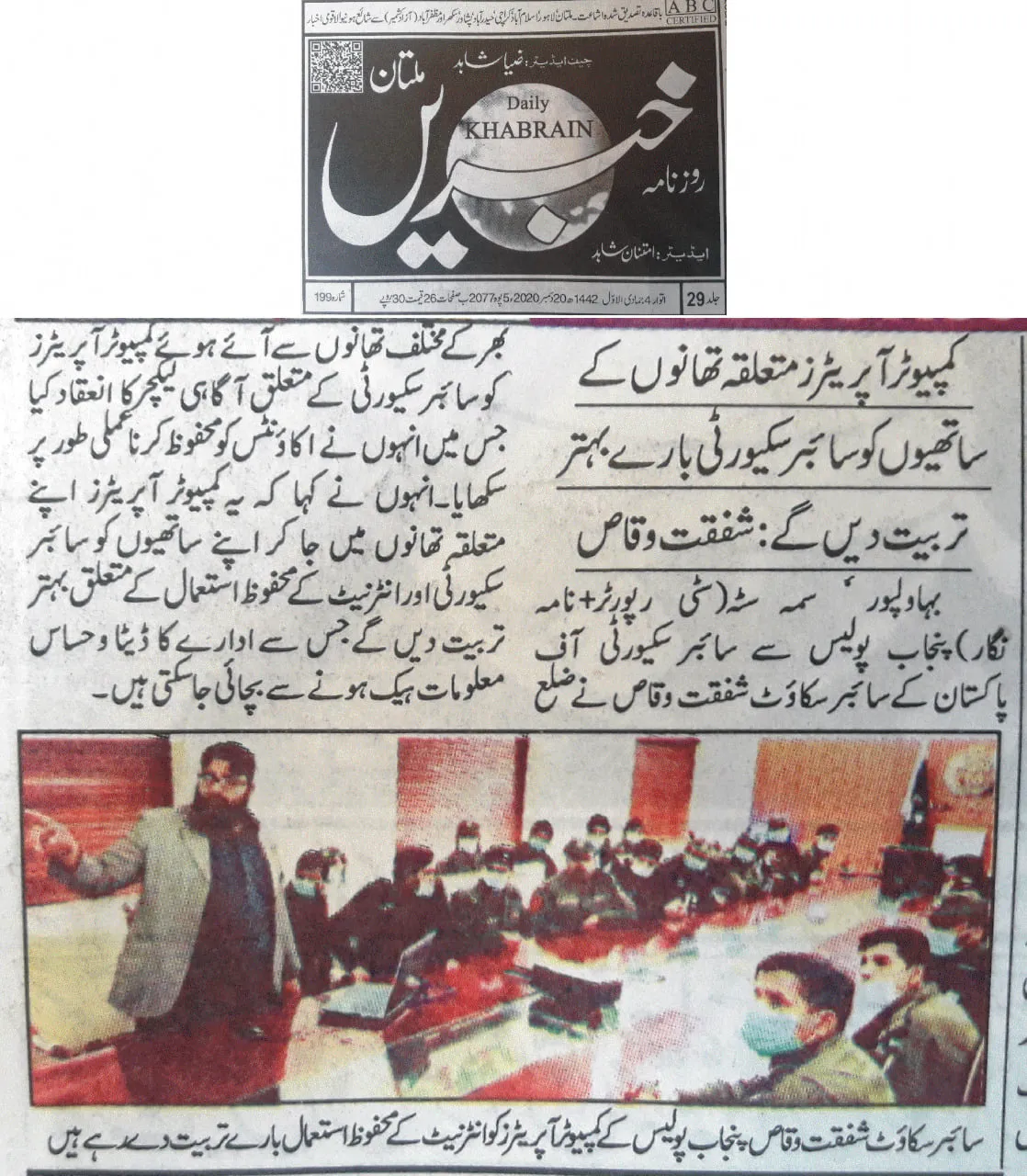 The initiative highlighted how Cyber Scouts within Punjab Police are actively contributing to internal capacity building and reinforcing strong information protection practices at the departmental level.