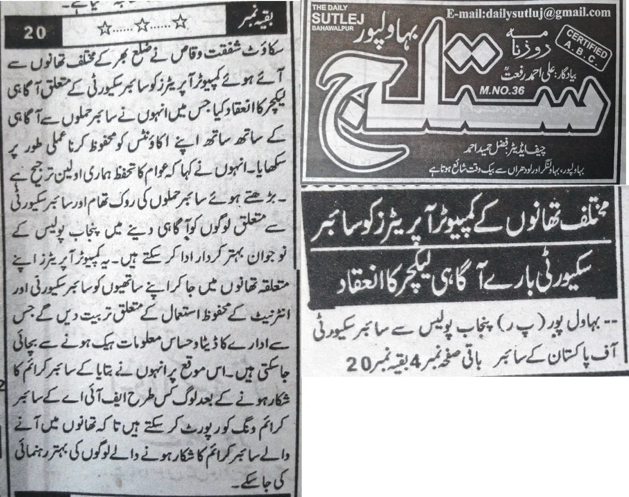 The session strengthened the cyber readiness of computer operators across the district, improving their ability to safeguard official data and maintain secure digital operations within police stations.