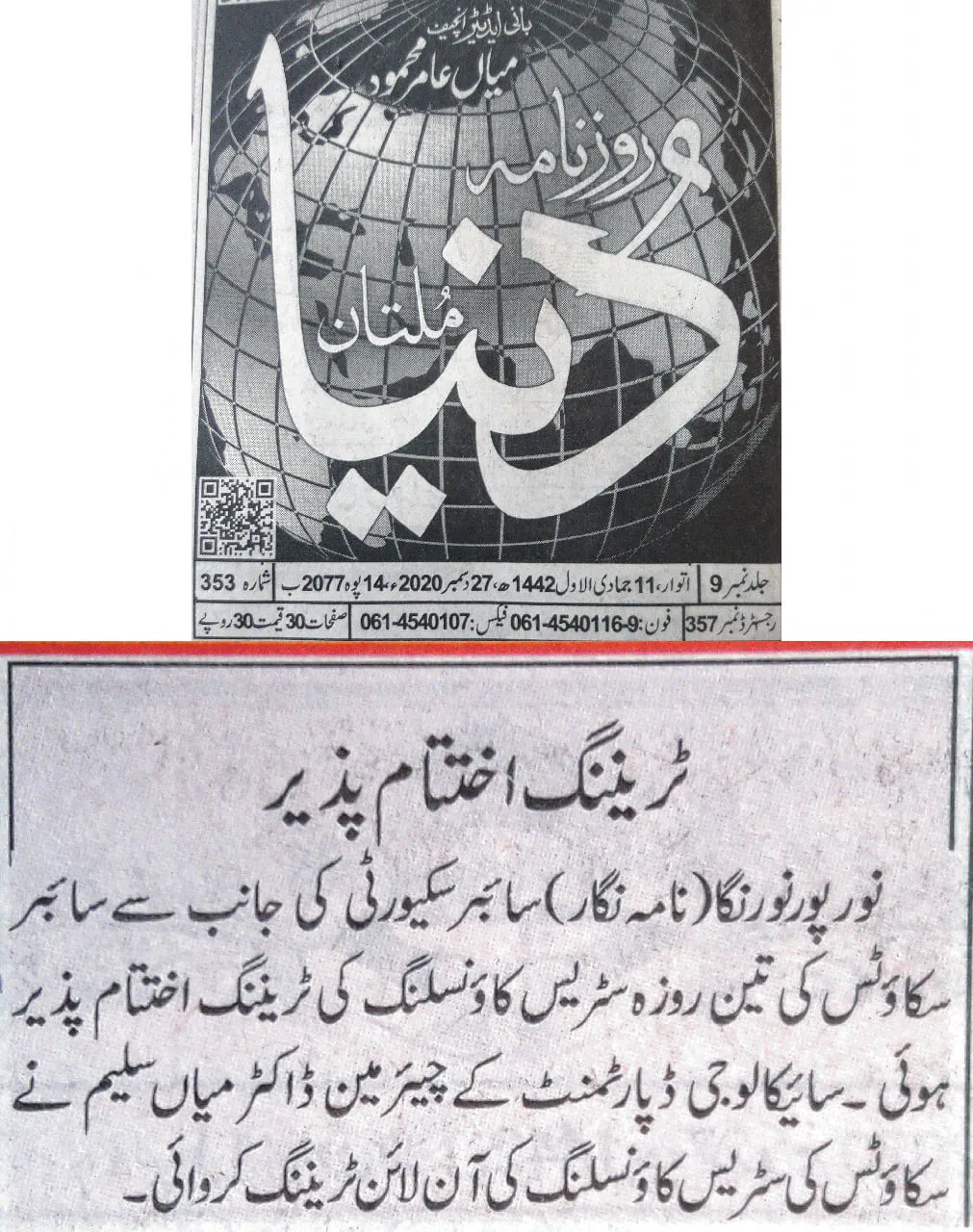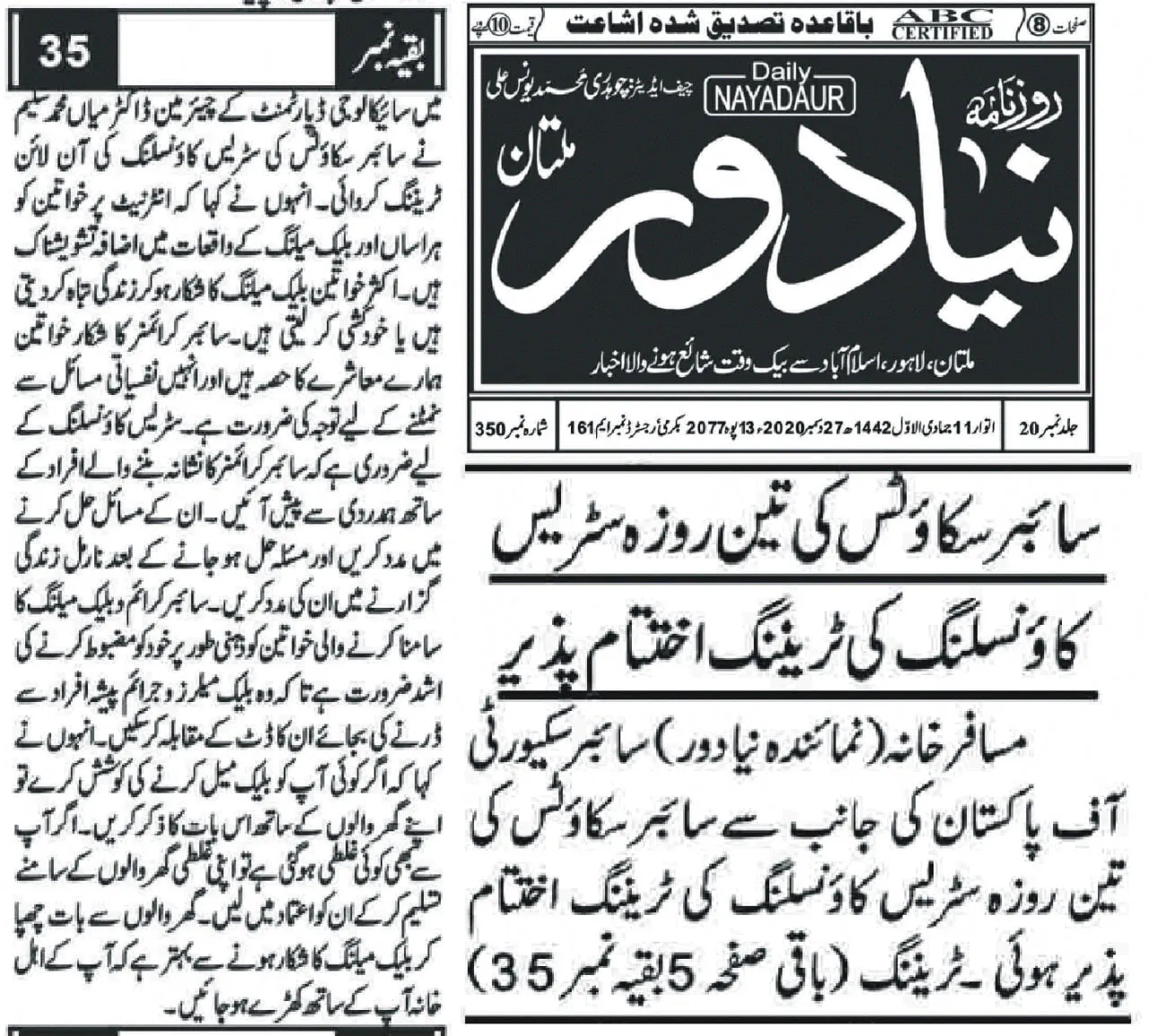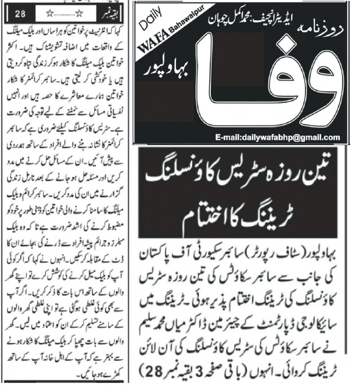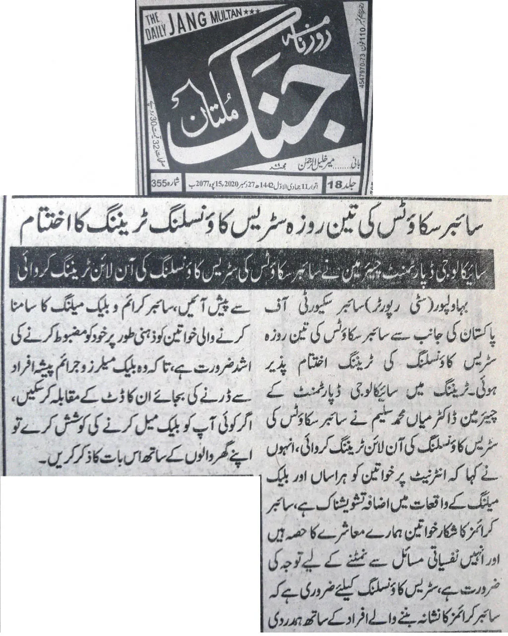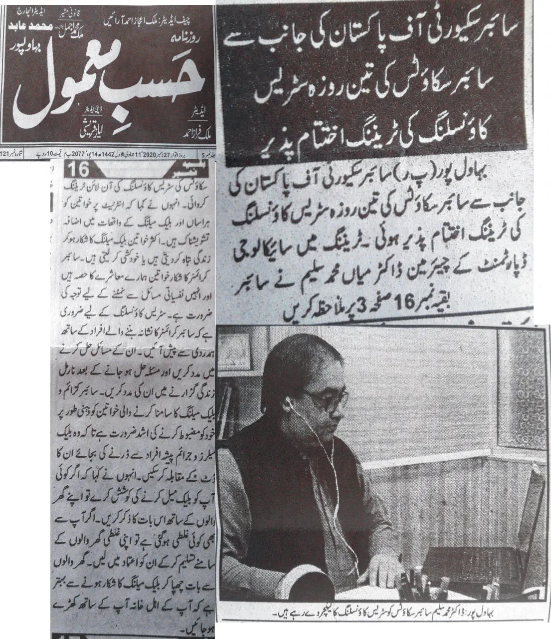 The training was conducted by Dr. Muhammad Saleem, Chairman of the Department of Psychology at The Islamia University of Bahawalpur (IUB), and focused on equipping counselors and Cyber Scouts with practical skills to support victims of cyber harassment and digital abuse.