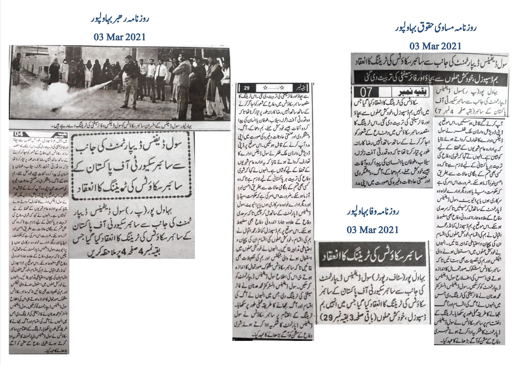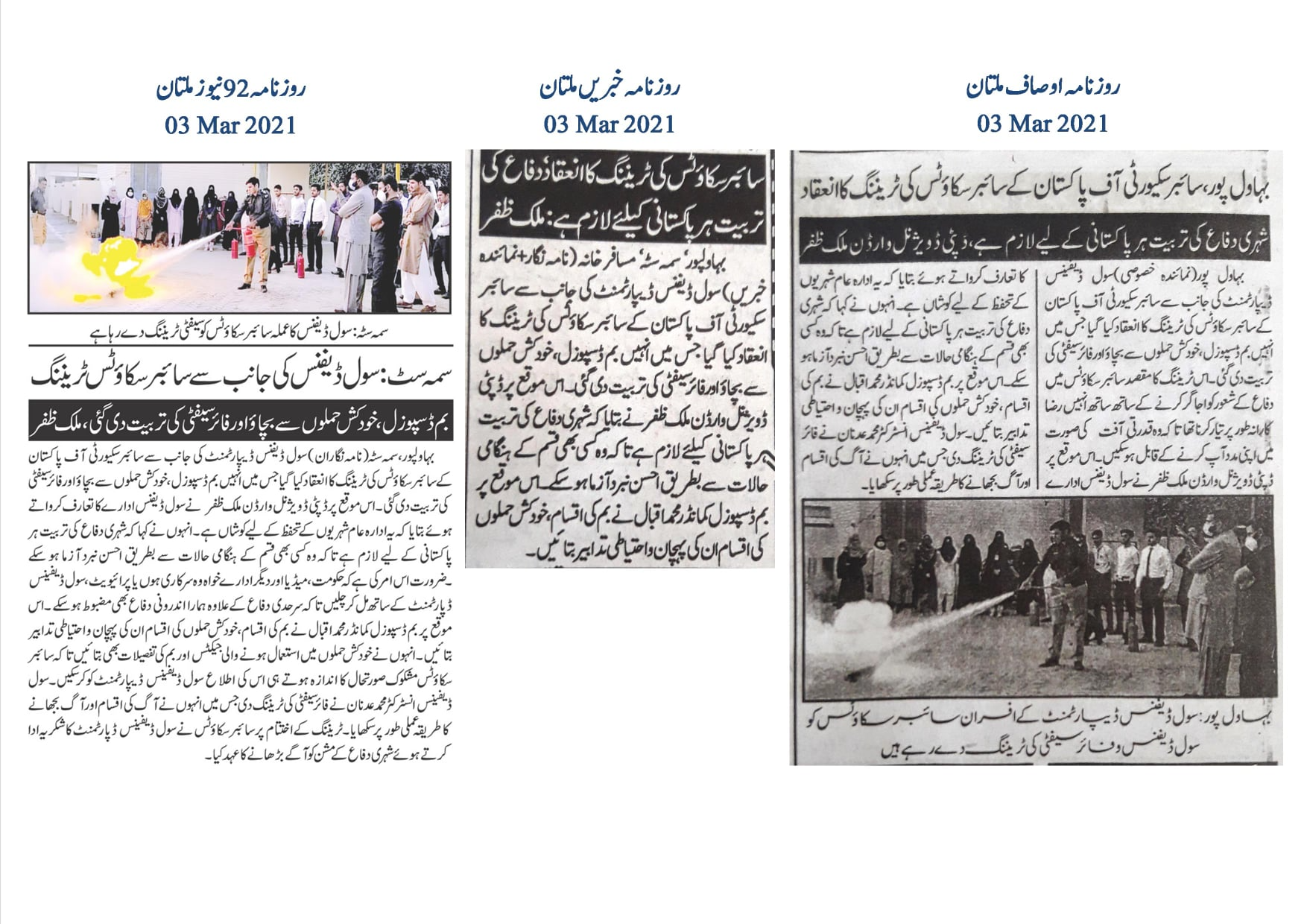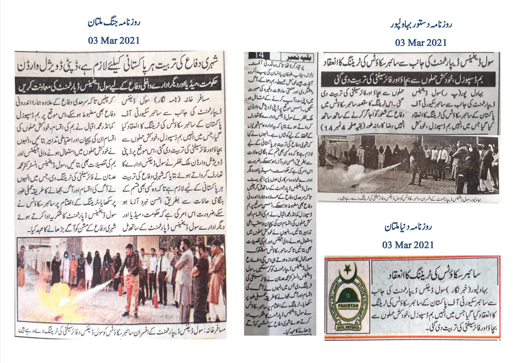 Deputy Divisional Warden Malik Zafar briefed the participants about the role of the Civil Defence Department, emphasizing its mission to protect citizens during emergencies. He highlighted the importance of civil defence training for all Pakistanis to ensure a resilient and well-prepared society.