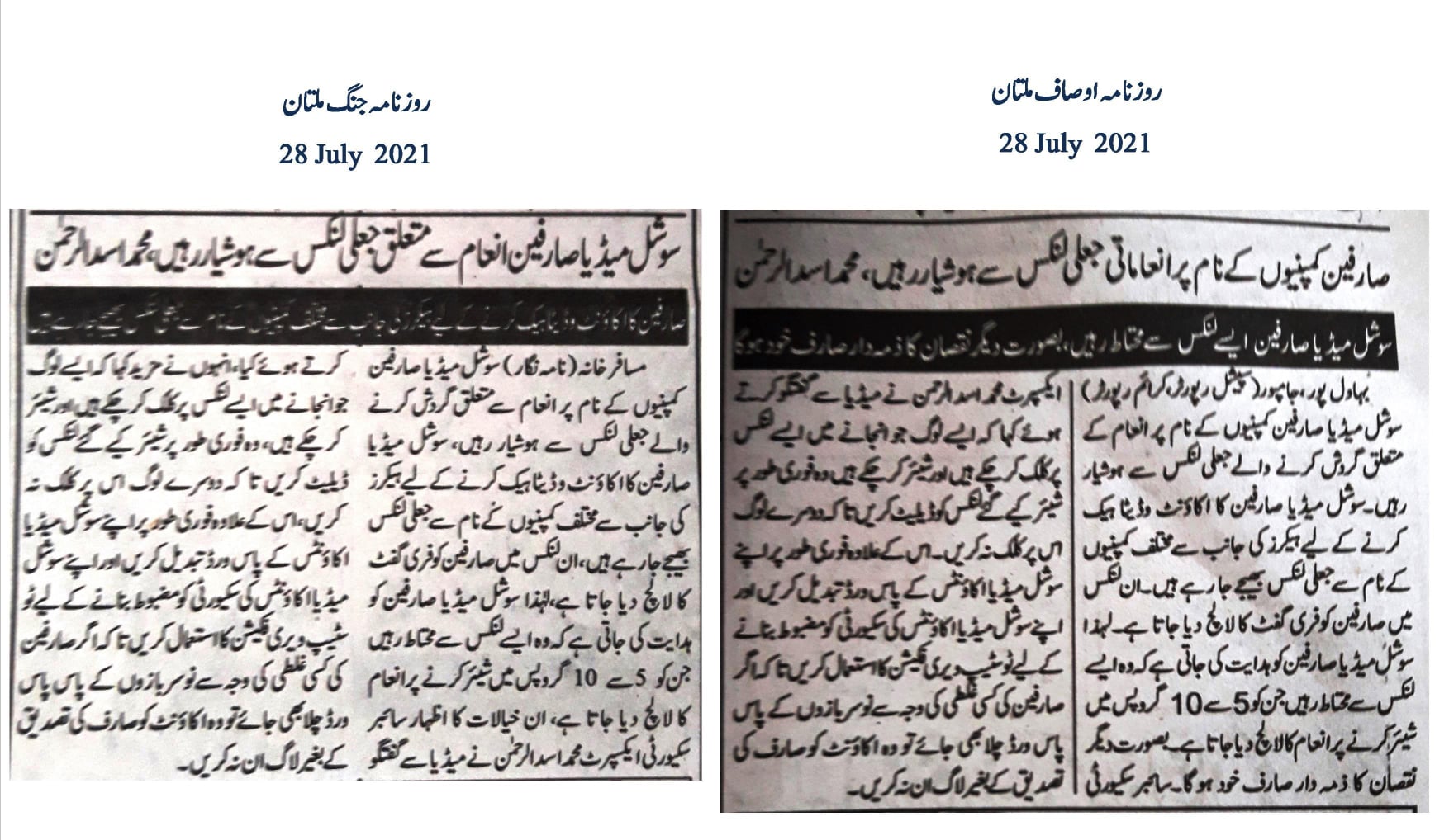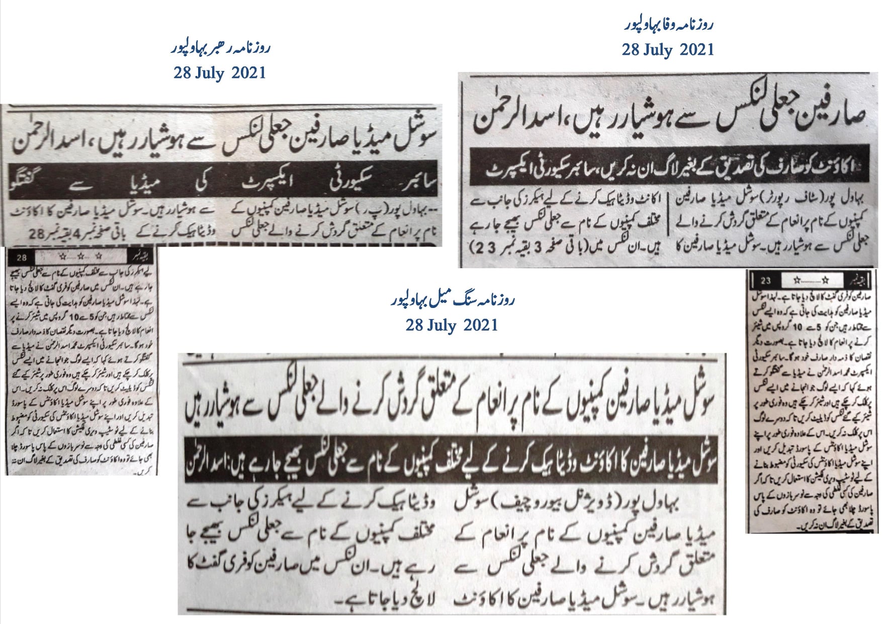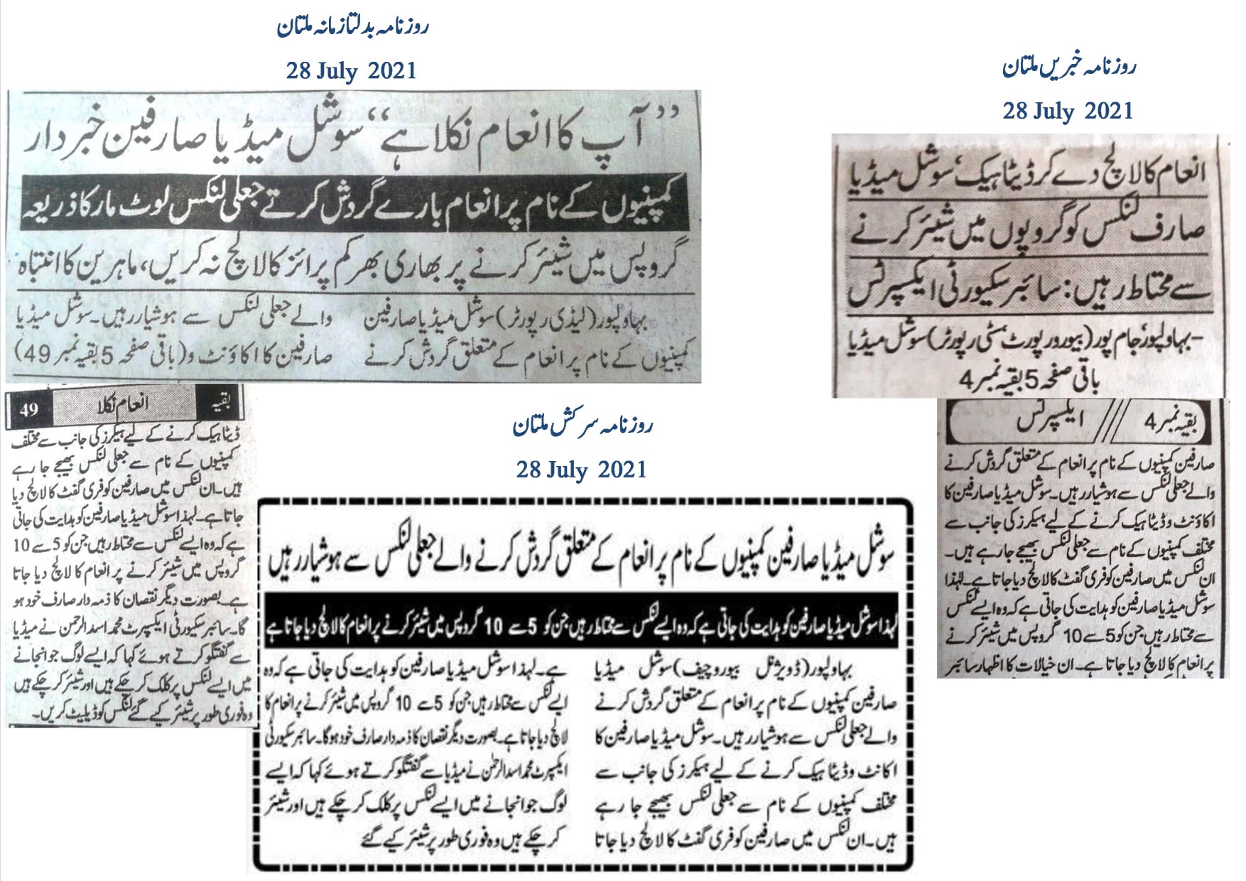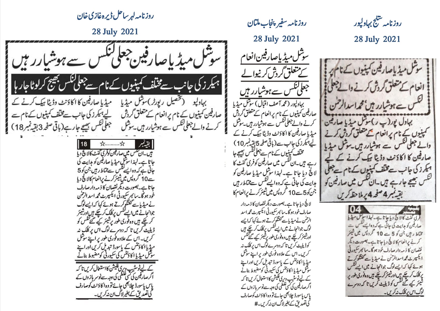 Social media users should beware of fake links circulating in the name of companies offering prizes. Hackers are sending fake links under various company names to hack social media users’ accounts and data. These links lure users with the promise of gifts. Therefore, social media users are advised to be cautious of links that promise rewards for sharing them in 5 to 10 groups. Otherwise, the user will be responsible for any loss. Cybersecurity Expert Muhammad Asad Ul Rehman, in a conversation with the media, said that people who have unknowingly clicked and shared such links should immediately delete the shared links to prevent others from clicking on them. Additionally, they should promptly change their social media account passwords and strengthen their accounts’ security by using two-step verification to ensure that even if hackers obtain the password due to a mistake, they cannot log in without the user’s verification.