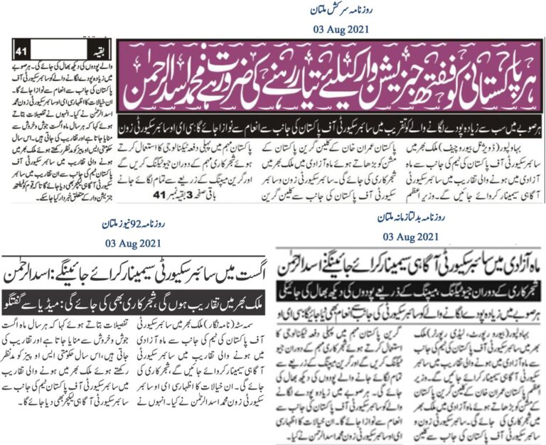 During the Independence Month celebrations across Pakistan, the team of Cyber Security of Pakistan will conduct cybersecurity awareness seminars. In line with Prime Minister Imran Khan’s Clean Green Pakistan mission, tree plantation activities will be carried out throughout the country during Independence Month. For the first time in the Clean Green Pakistan campaign, Cyber Security Zone and Cyber Security of Pakistan will employ technology, using geo-tagging during the tree plantation campaign and monitoring the planted trees through green mapping. The individual in each province who plants the most trees will be awarded by Cyber Security of Pakistan. These remarks were made by the CEO of Cyber Security Zone, Muhammad Asad Ul Rehman. He detailed that every year, the month of August is celebrated with enthusiasm, and events are organized.