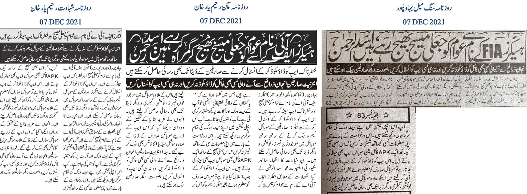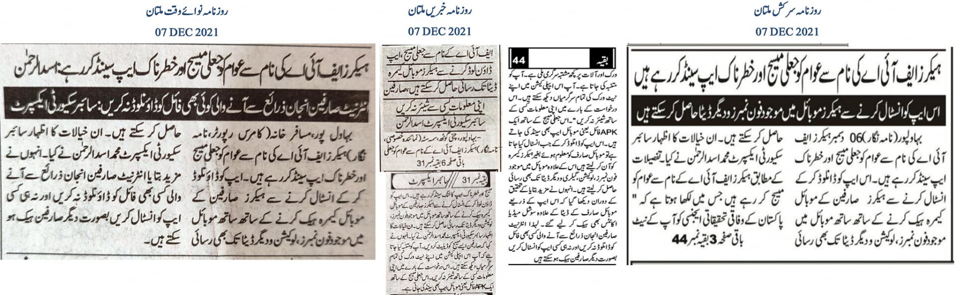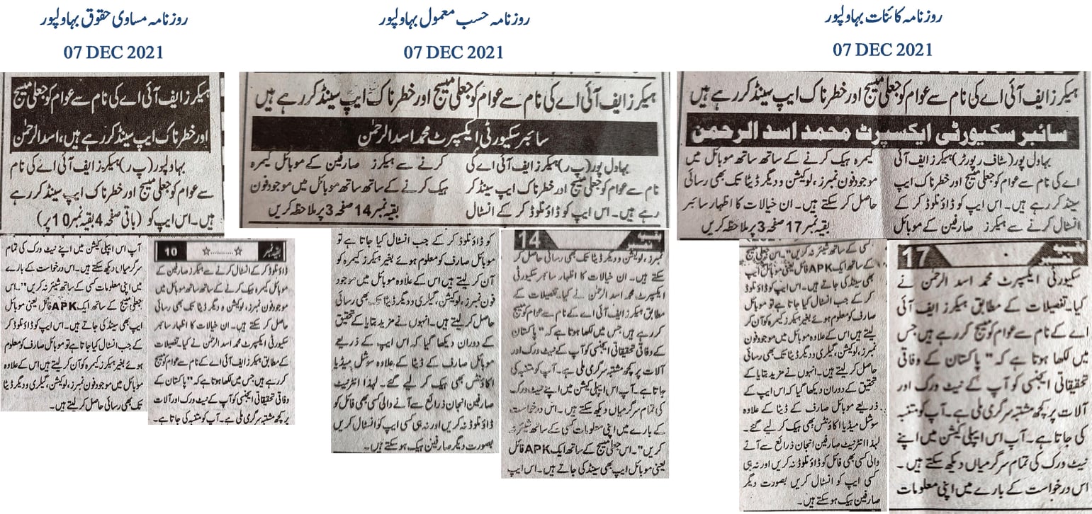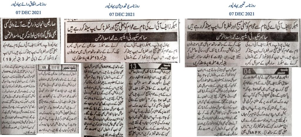 Cybersecurity expert Muhammad Asad Ul Rehman has alerted the public about hackers sending fake messages and malicious apps under the guise of the Federal Investigation Agency (FIA). Downloading and installing these apps allows hackers to access the user’s mobile camera, phone numbers, location, and other data stored on the mobile device. Hackers are messaging the public, pretending to be from the FIA, warning users about suspicious activity found on their network and devices. The message also includes an APK file, a mobile app, which upon installation, grants hackers access to the mobile camera, contacts, location, gallery, and other data without the user’s knowledge. Further investigation revealed that these apps could also hack social media accounts. Therefore, internet users are advised not to download any files from unknown sources or install any apps to avoid being hacked.