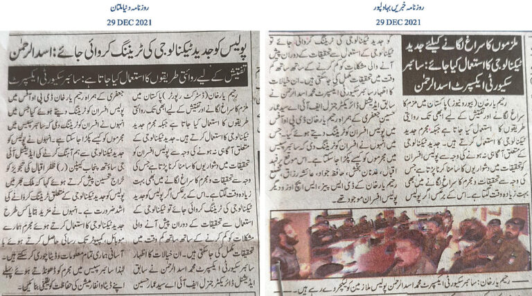 Cybersecurity expert Muhammad Asad Ul Rehman, alongside former Additional Director General of FIA Syed Ammar Hussain Jaffery, emphasized the necessity for police officers to receive modern technology training during a session held at the DPO office in Rahim Yar Khan. He highlighted the challenges faced by police officers due to a lack of awareness about modern technology, which makes investigations difficult and time-consuming, especially when criminals employ advanced technological methods. By providing training on modern technology, police officers can overcome these challenges more efficiently and complete investigations in a shorter time. He appreciated the proposal by Additional IG South Punjab Captain (Retd) Zafar Iqbal to align the police with modern technology, stressing the urgent need for such training across the country. He further explained how criminals could easily steal information and data by gaining access to our mobiles and computers. Thus, while tracking criminals in cyberspace, it’s crucial first to ensure the protection of one’s data and information. The training session was attended by Fahad Iqbal, Adnan Buksh, Hafiz Jawad, Ayesha Razzaq, DSPs, SHOs, and other police officers from the Rahim Yar Khan district.