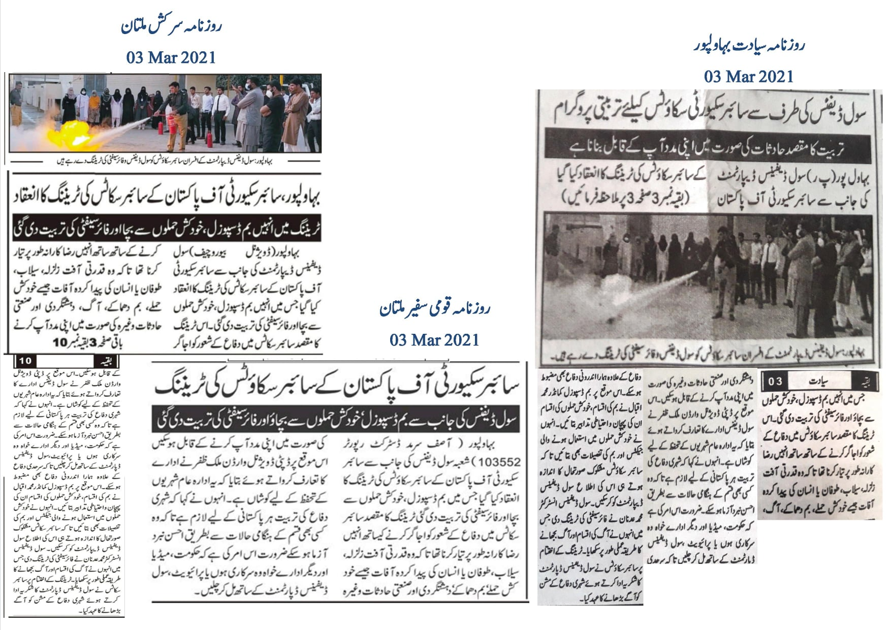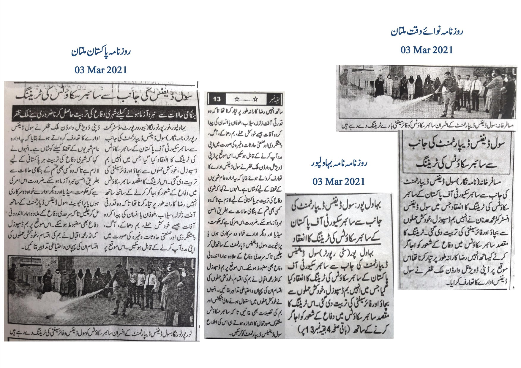Deputy Divisional Warden Malik Zafar briefed the participants about the role of the Civil Defence Department, emphasizing its mission to protect citizens during emergencies. He highlighted the importance of civil defence training for all Pakistanis to ensure a resilient and well-prepared society.
